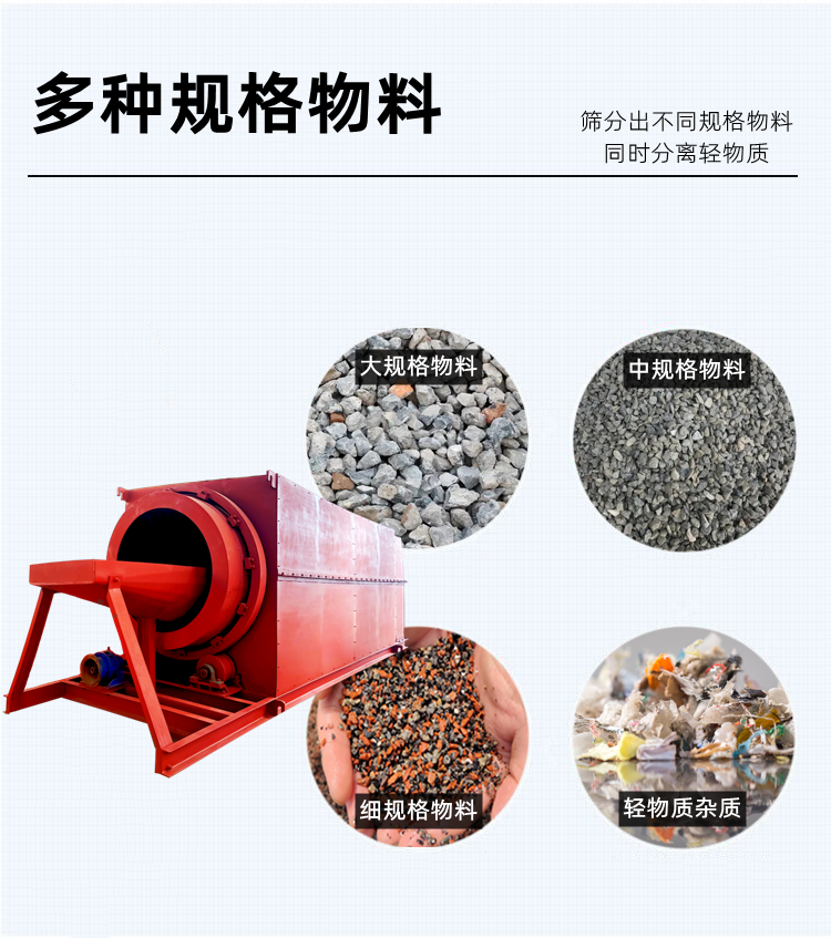 滾筒式篩分裝置主要用于城市裝修垃圾,填埋場垃圾等分選篩分領(lǐng)域,可以有效的篩分混合固體廢棄物中不同尺寸和比重的硬質(zhì)物料和惰性物料。并具有自清潔的功能。滾筒式篩分裝置是全能性很高的機械環(huán)保設(shè)備。具有良好的耐磨技能,篩分效率高、噪音低、揚塵量小、使用壽命長、維修量小、檢修方便等諸多特點。